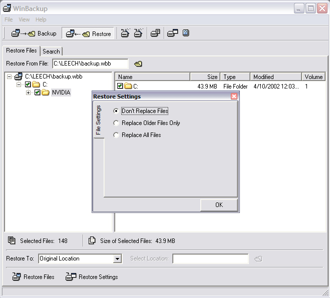 Restoring a previous backup is also an easy task. Simply switch to "Restore"